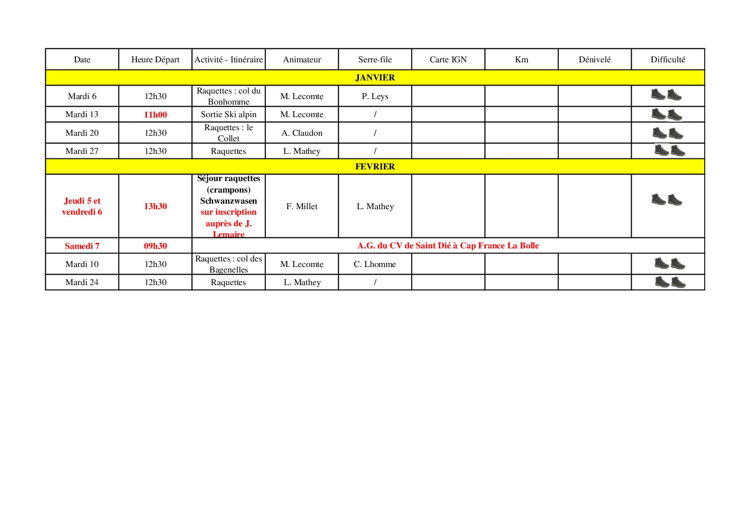 La rando du mardi 27.01 aura lieu au col du Calvaire.